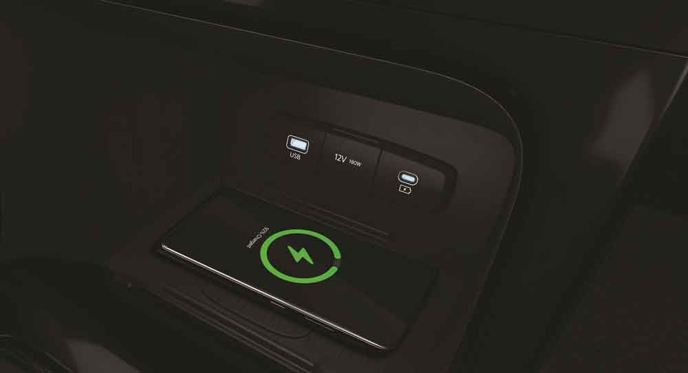 - Sạc không dây chuẩn Qi giúp không gian cabin gọn gàng hơn