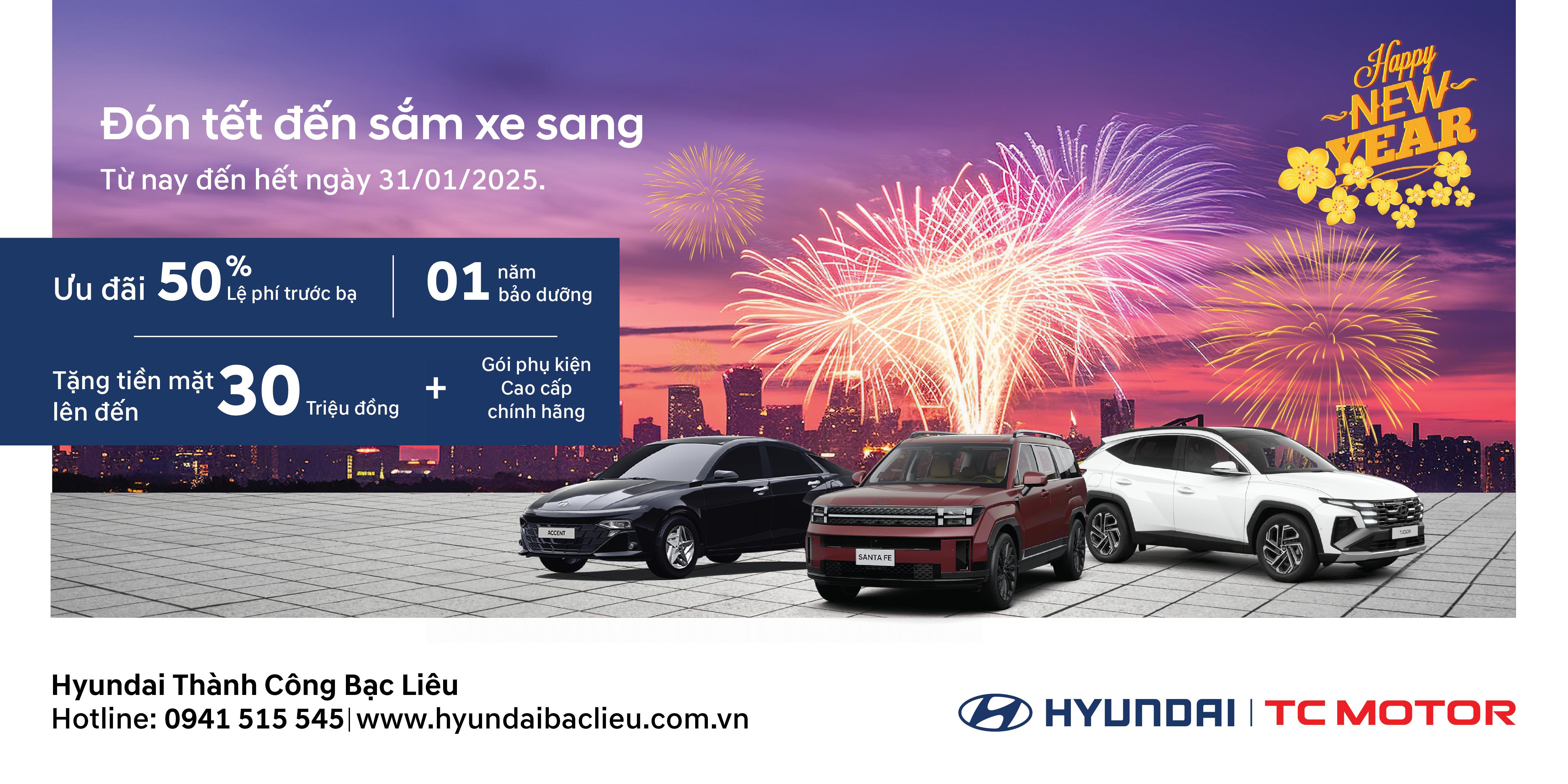 * Khách hàng mua xe trong tháng 1 trước dịp tết từ Hyundai Bạc Liêu sẽ được ưu đãi như sau::