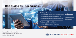Chương trình Khuyến mại dịch vụ tháng 11 tại Xưởng Dịch vụ Hyundai Bạc Liêu....